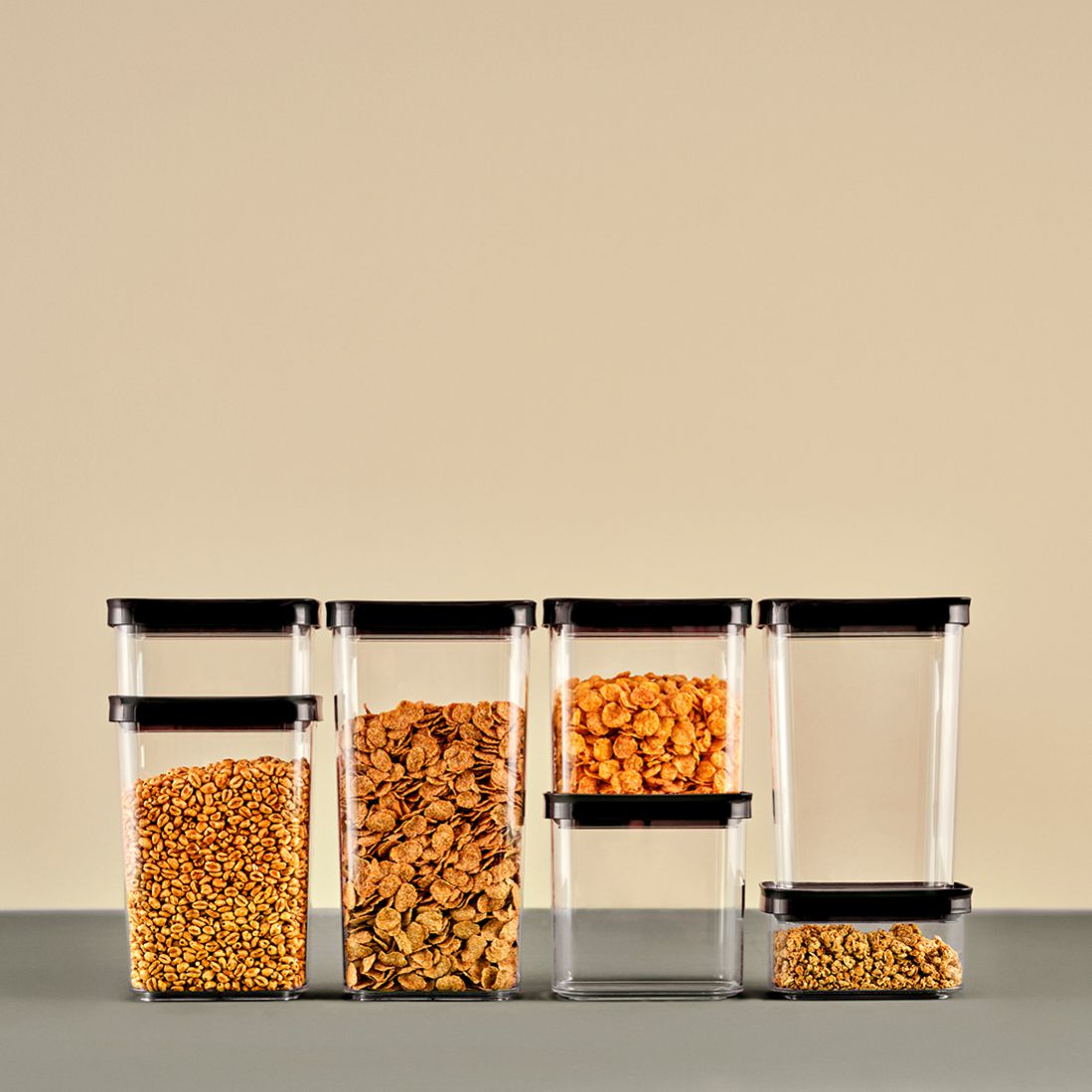 - Modüler istifleme dizaynı sayesinde dolaplarda, kilerde ve buzdolabında akıllı depolama alanları oluşturur.